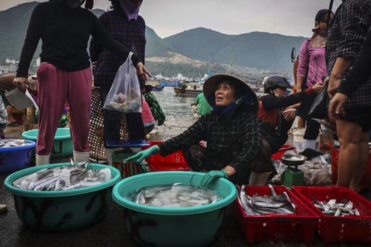 A woman sells fish at a market in Nha Trang harbor in Vietnam in this October 26, 2024 file photo. (AP Photo/Yannick Peterhans, File)