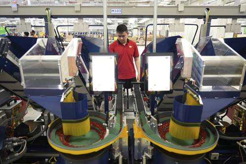 GREEN FACTORY. A worker operates packing machines at the Binh Duong Lego factory. (AP Photo/Hau Dinh)