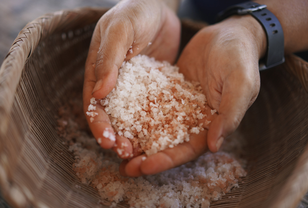 white salt begin to form. This salt is harvested by carefully and slowly