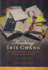 It’s therefore with some anticipation that Finding Iris Chang: Friendship, Ambition, and the Loss of an Extraordinary Mind comes to us. Author Paula Kamen, author of three previous books, was a friend of Chang, a colleague, and a competitor. Finding Iris Chang is a peculiar amalgam of biography and memoir, journalistic inquiry, and treatise on Chang’s social significance.